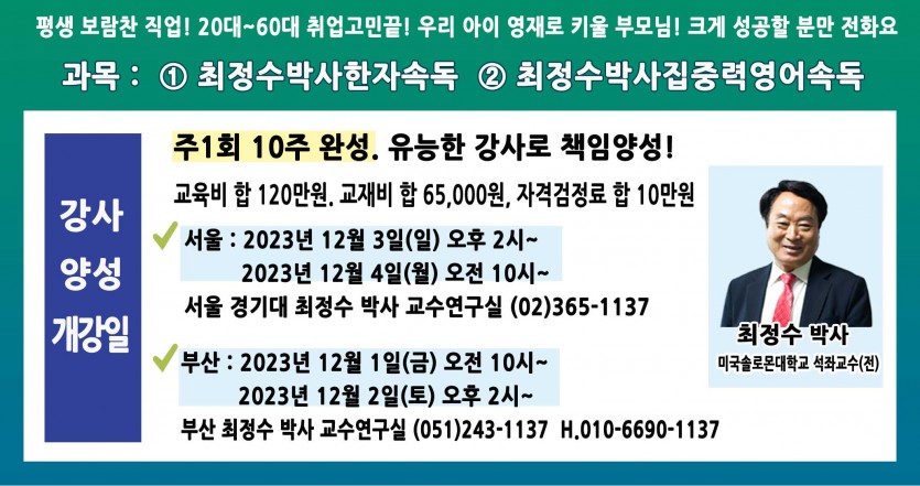 한국초등영재교육협회에서 알려드립니다.- ①최정수박사한자속독 ②최정수박사집중력영어속독